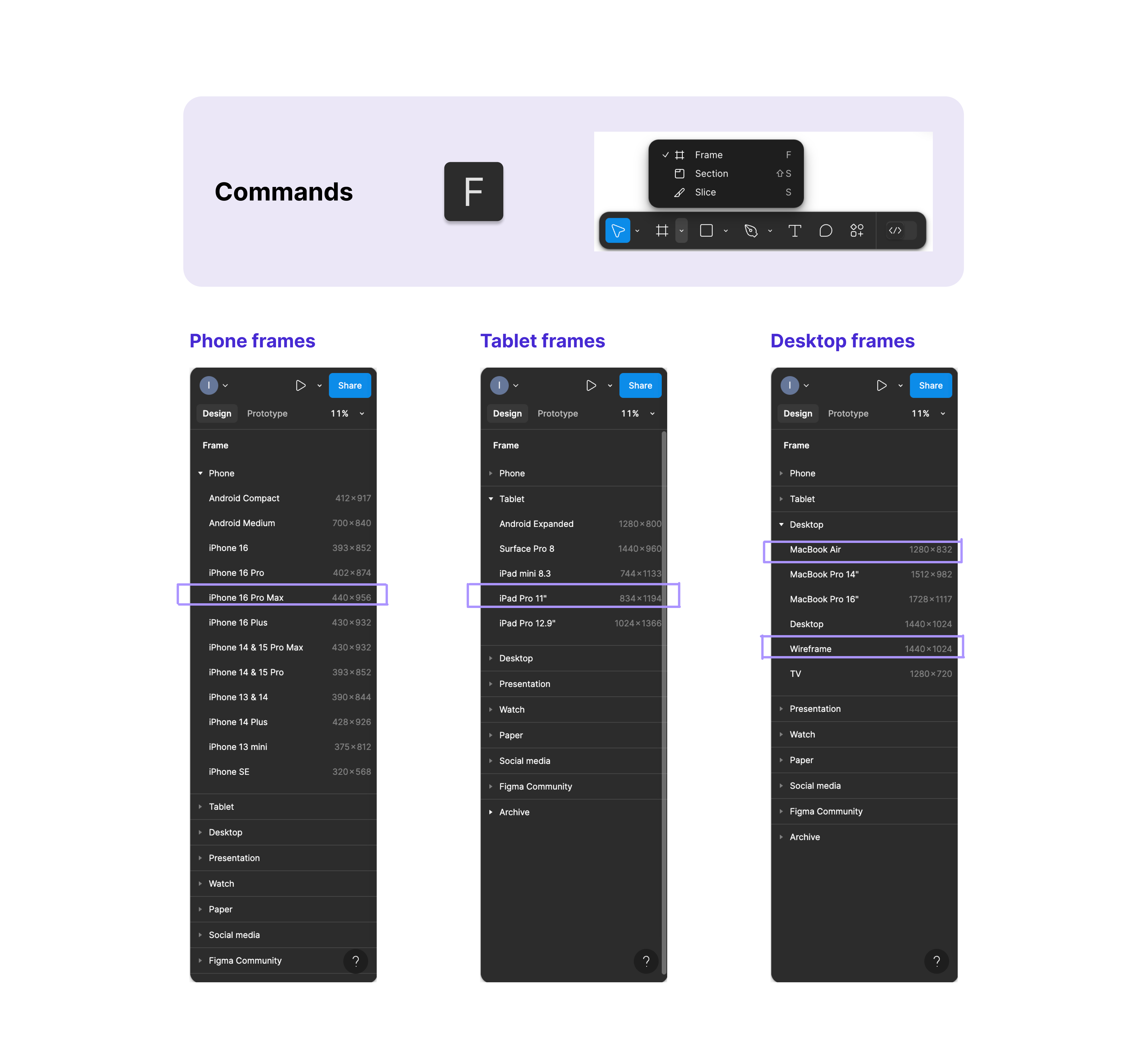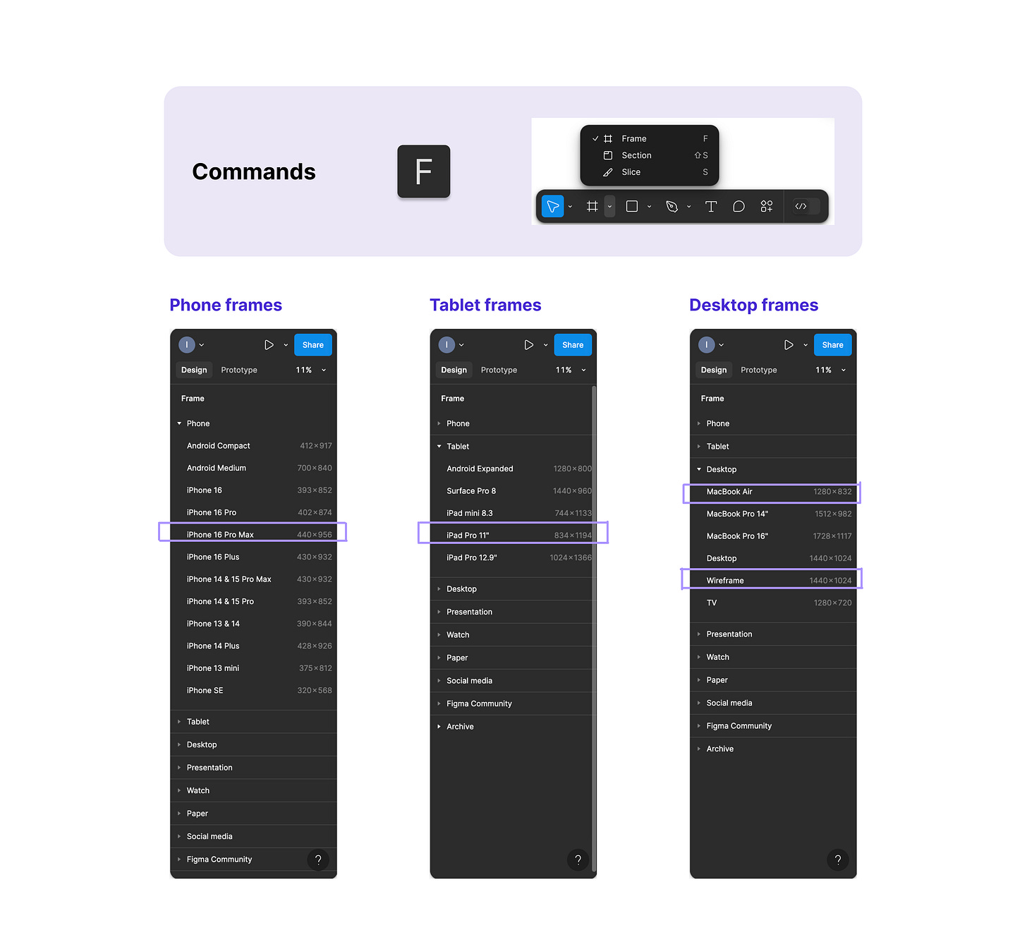 Also, don’t feel like you have to create a fully animated prototype for every design. Simply designing for different screen sizes, even as static frames, is enough to guide your decisions and help developers understand how the layout should adapt.